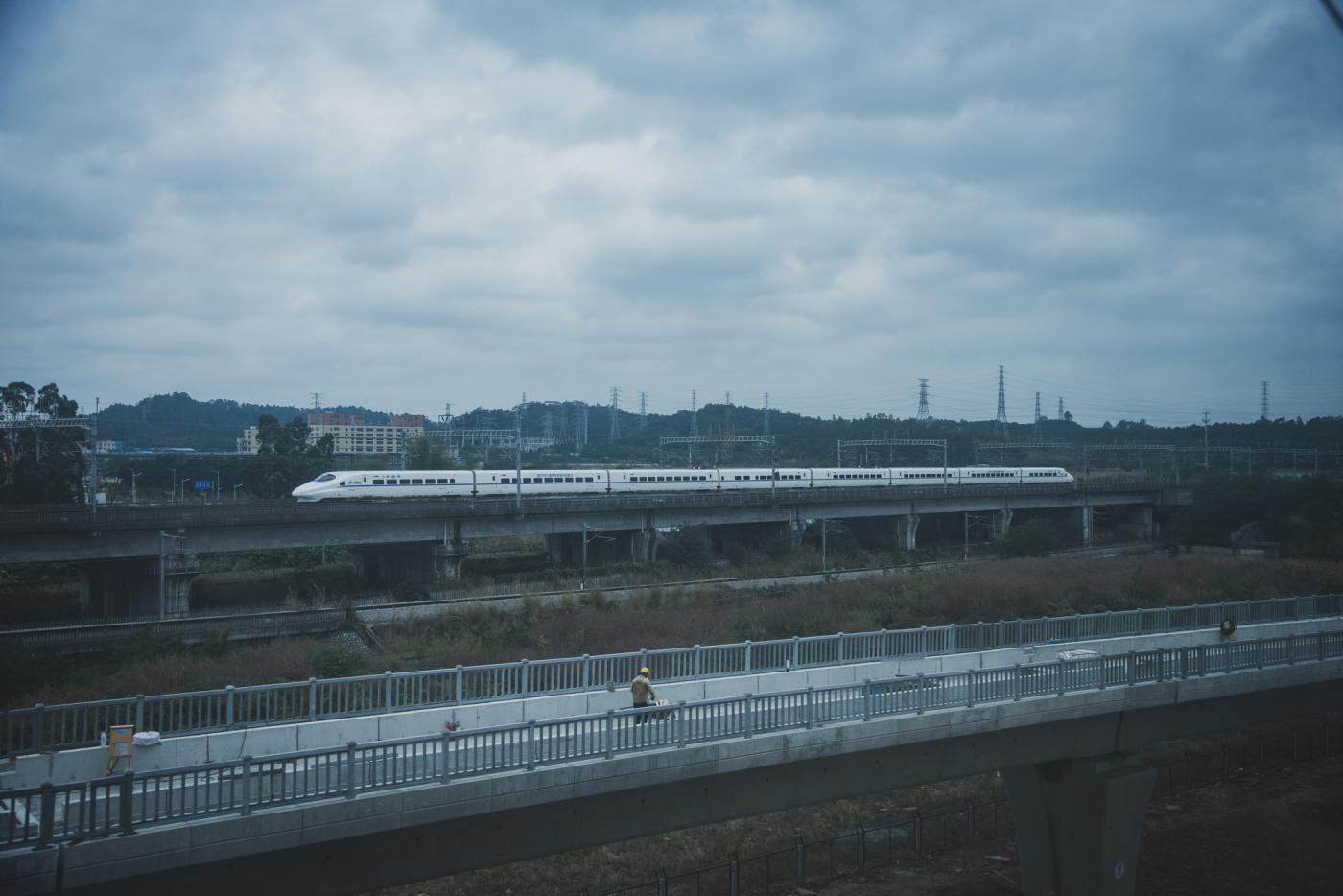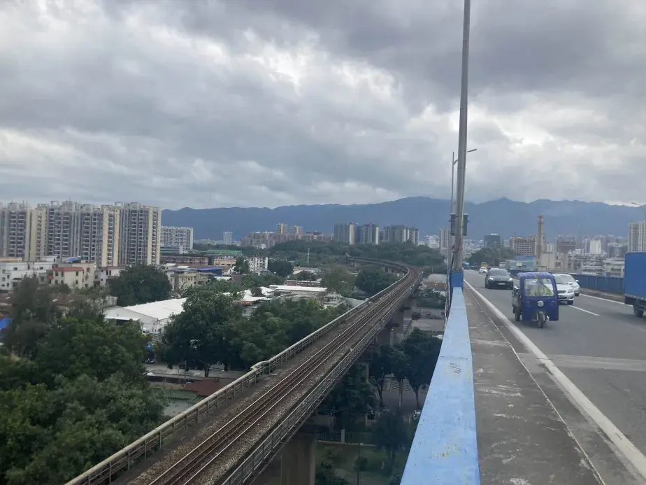到着した瞬間に湧き出る「あ、ここ見たことある!」っていう感じ。肇慶西江大橋という場所で、道路橋と鉄道橋が一体となった橋。