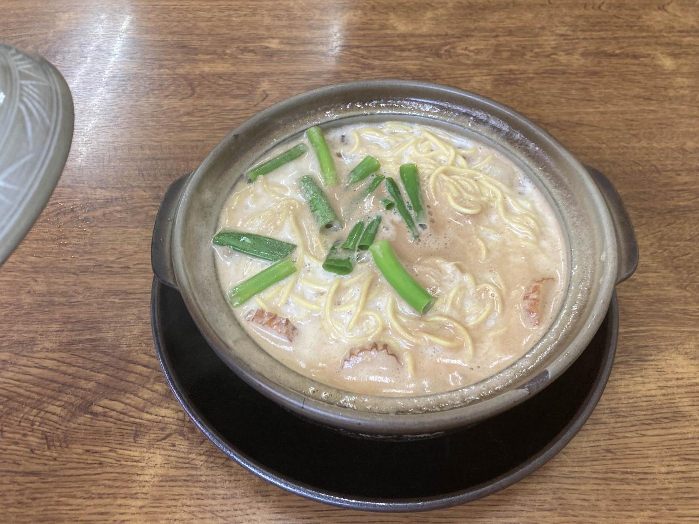 そしてラーメンだが、鍋焼きなだけあってとても熱くしかしとても濃厚ですごい美味しい。
