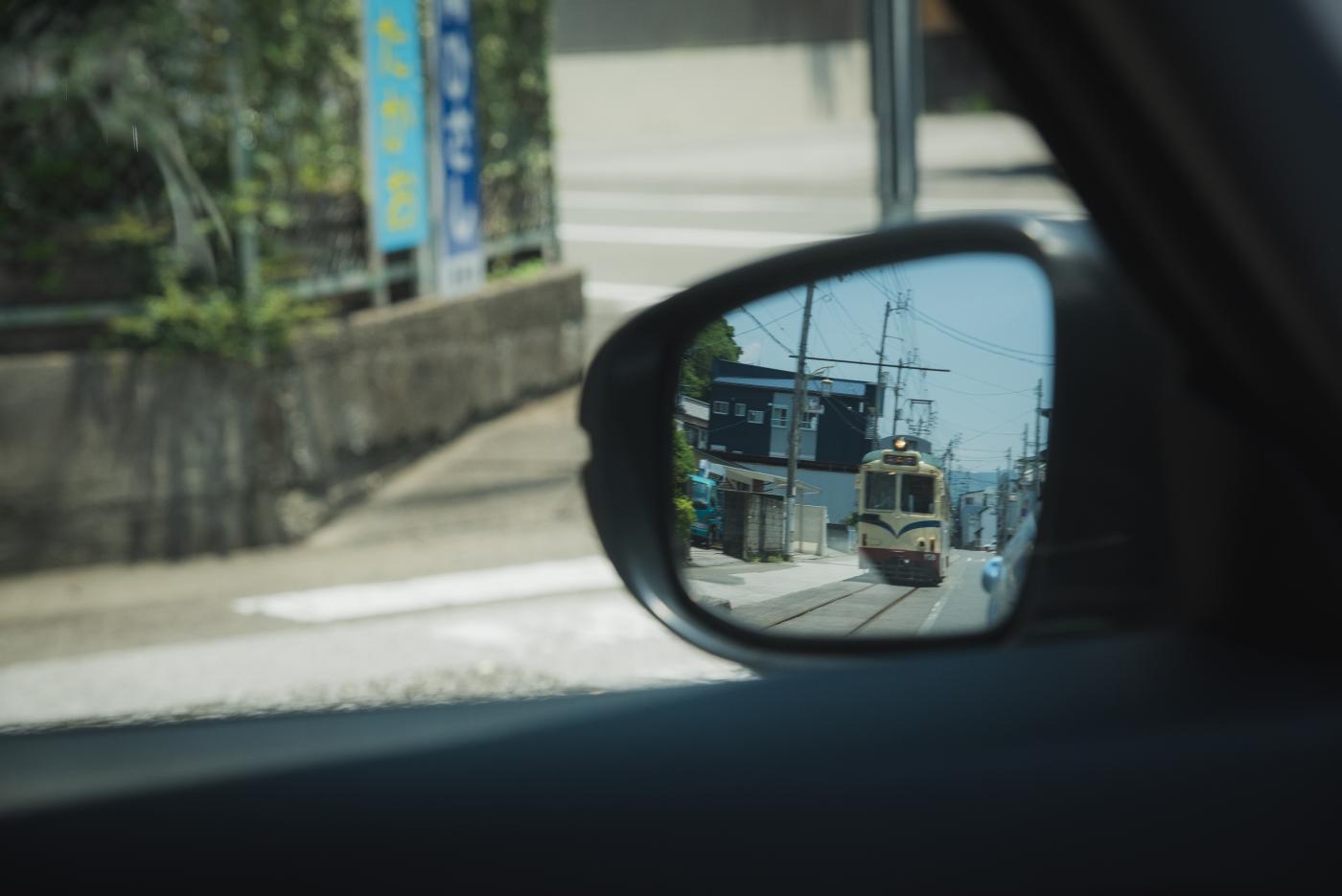 信号待ちとかで待っていると結構追い抜かれる。運転しているので乗り出して撮れないが、サイドミラーごしに一発。