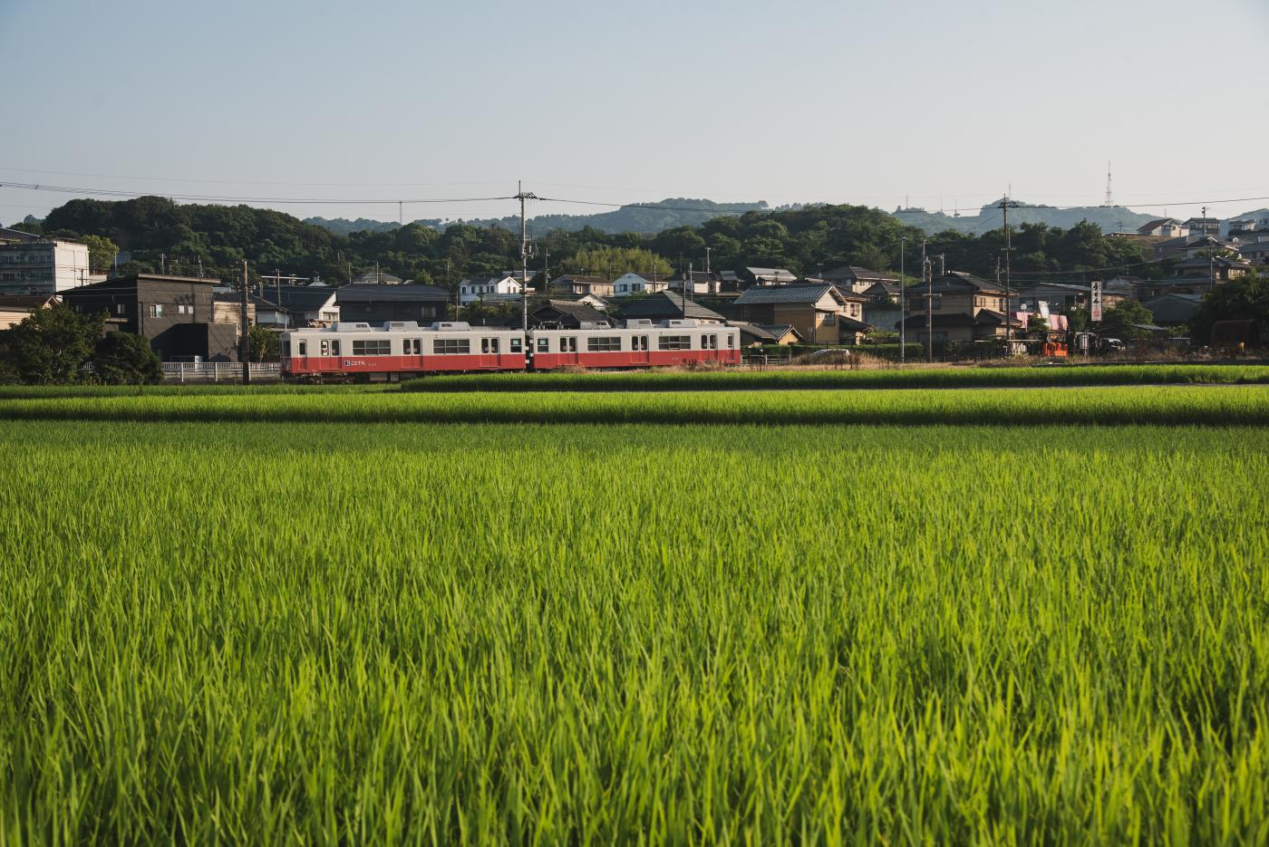交換してやってきた瓦町行の上り列車もここで捕獲。車体がシンプルなツートンのおかげでよく風景とあっているし、赤なのでとても存在感がある。