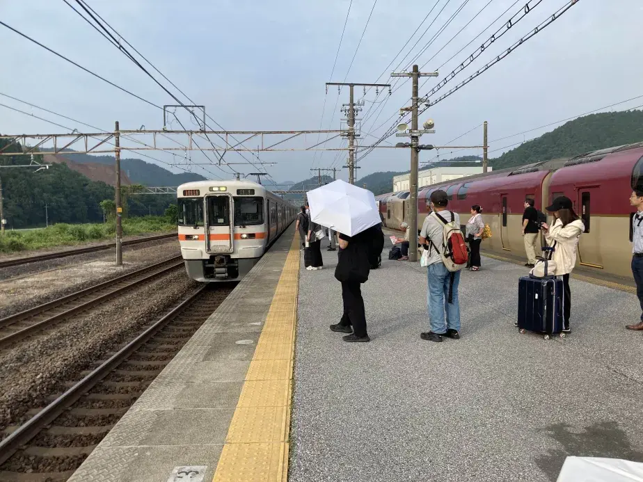 旅行客であふれる近江長岡駅。地元で普段から使っている人が何事かと驚いた顔で見ていたのが印象的だった。