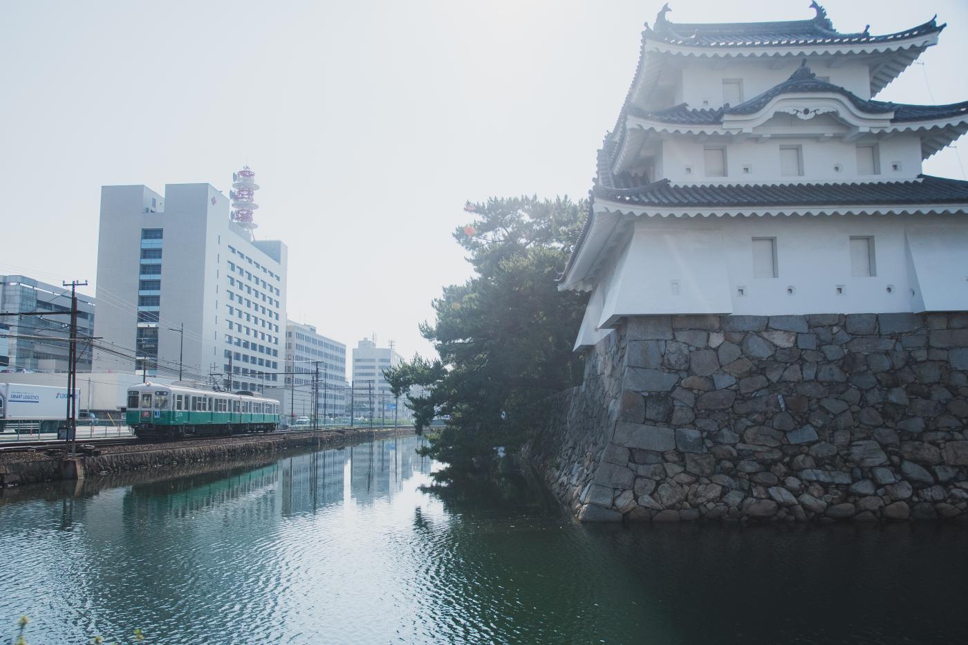 琴電の高松築港~片原町の間は高松城のお濠をなぞるように通り、この建物は艮櫓(丑寅櫓)という文化財なのだそう。