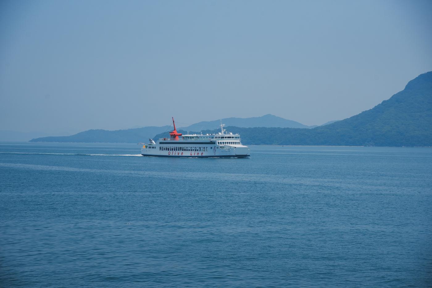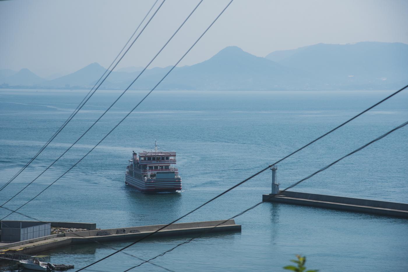 途中ですれ違った客船。高松港と小豆島を結ぶフェリーである。小豆島にも行きたいね…