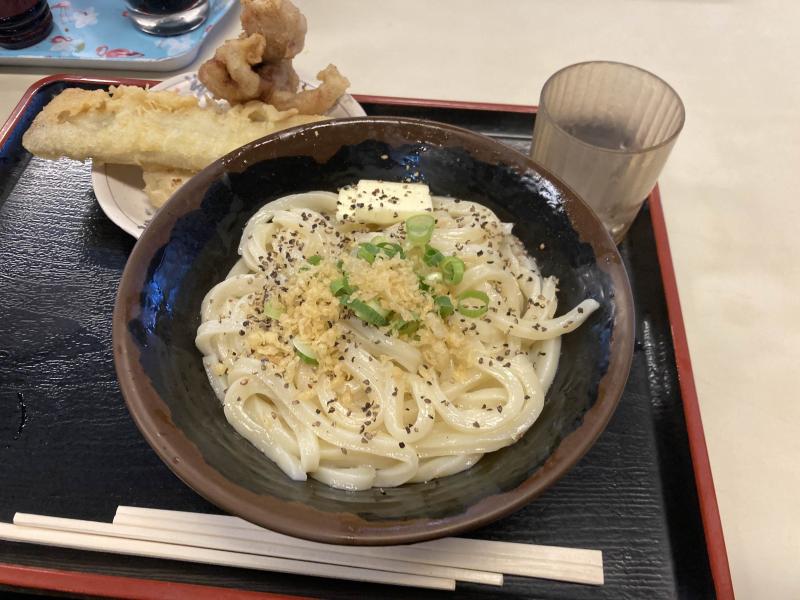 釜玉バターうどんである。バカ一代といえばこれ、という感じの定番メニュー。つるつるしたうどんの食感とバターのクリーミーな感じがいい感じでハーモニー。奮発していわし天もいただいたのだがこれもとっても美味しい(これだけでご飯いけちゃう)