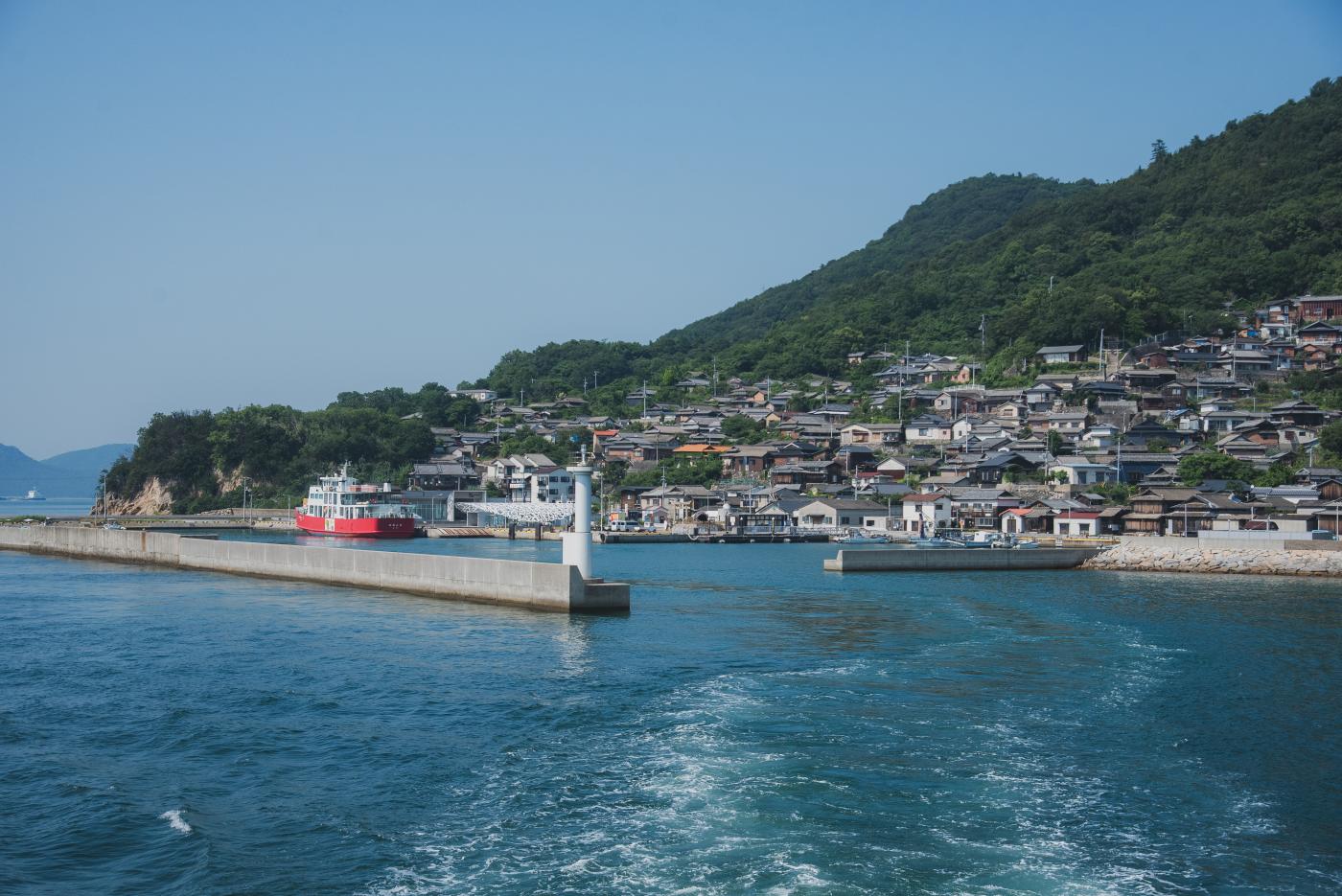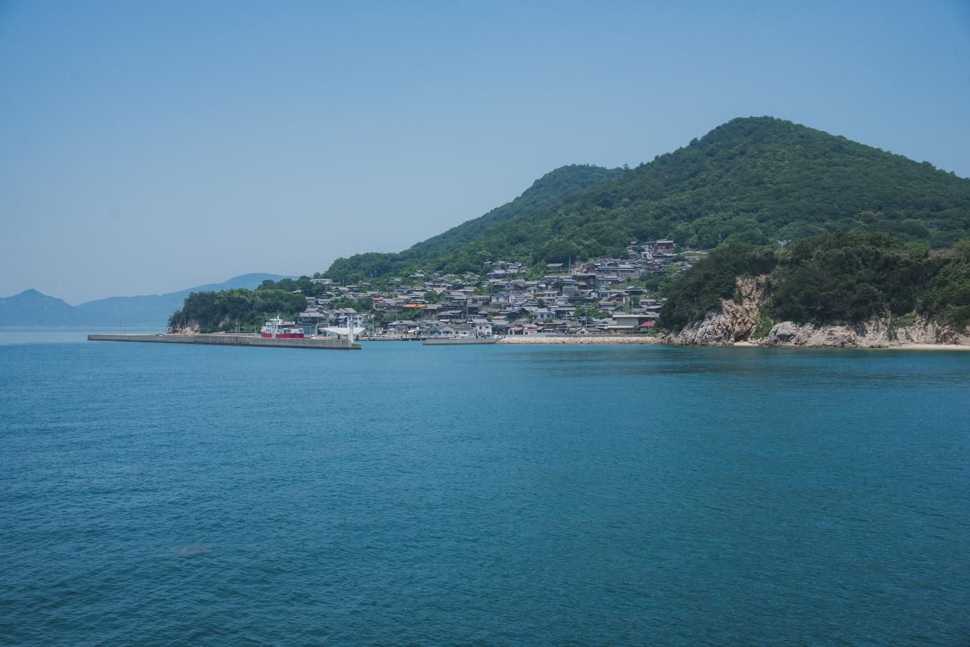 家々の瓦の屋根といい、雰囲気が離島としてバッチリすぎる。左にちょっと見えるのが女木島。