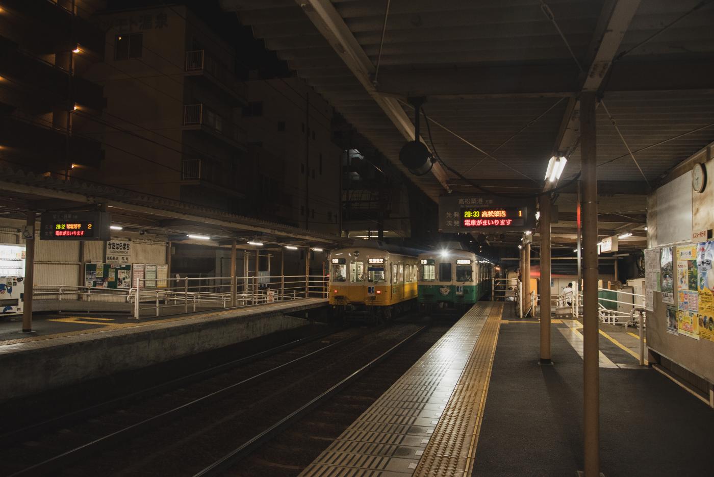 この区間は琴平線・長尾線どちらの列車もくるのでかなり本数が多い。地方私鉄とは思えないくらいの本数で、すごい便利。