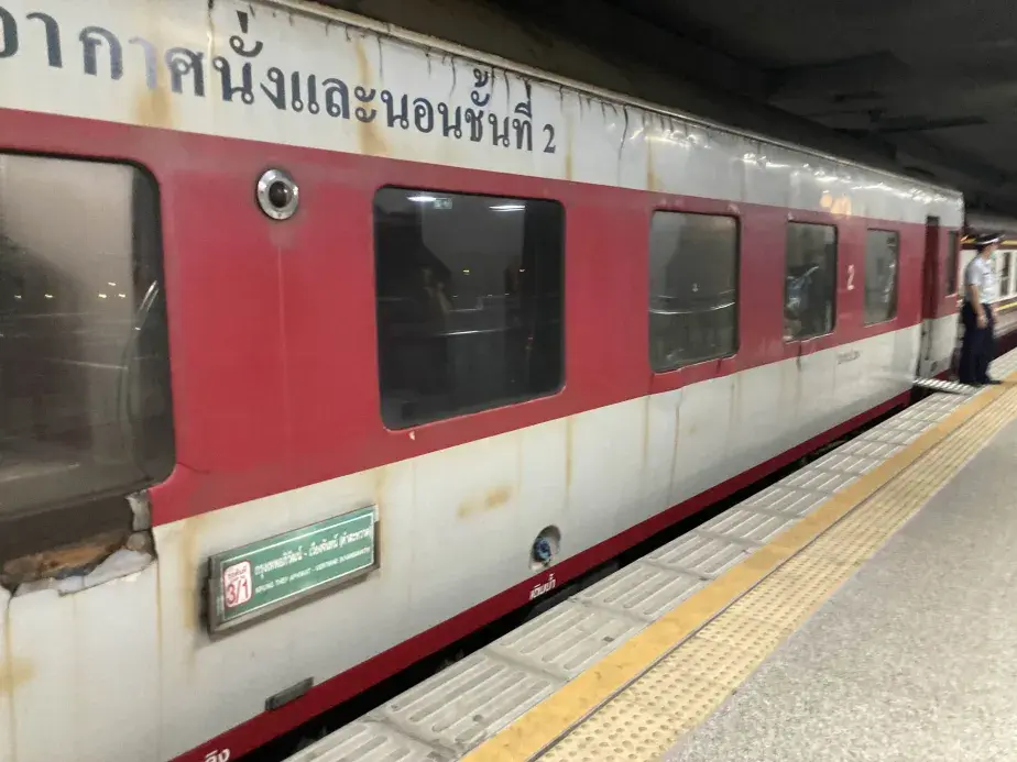 中3の時にはまなすの寝台車に乗って以来の客車寝台、もうワクワクがとまらない。日本は北斗星の運行終了をもって走行できる24系はなく、現在日本で宿泊できるものはすべて保存車。それがタイではこうやって動いている24系に、ちゃんと夜行列車として乗車できる。しかも4000円くらいで。素晴らしい。