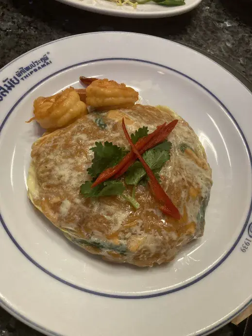 パッタイが到着!ここのパッタイの特徴として炒められたパッタイを薄い卵の膜で覆っているという点がある。