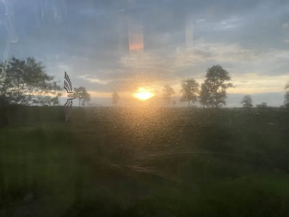 次に目が覚めると、外から太陽がうっすらと見え、なにもない原野をひたすら突き進んでいる。