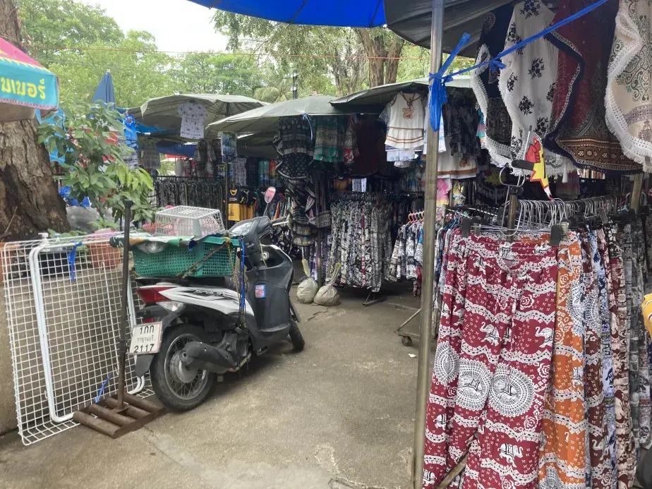 女性ものも男性ものもいかにもタイ!というような服が結構多く並んでおり、しかもそれが安い。だいたい4桁行かない値段で上下セット買えてしまうのだ。嫁の方は奮発して3着くらい買った。