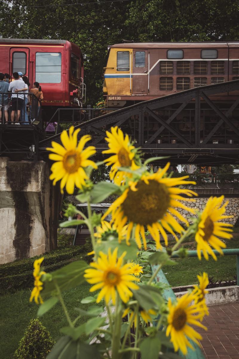 クゥエー川橋梁はタムクラセー川橋梁と同じく歩いて渡ることができるので、対岸へ。だいたい1時間くらいで、タムクラセーからやってきたロイヤルブロッサムがクゥエー川を渡る。