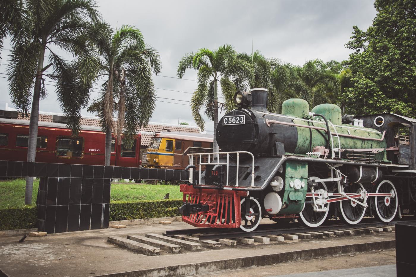 降車が終わると、一度カンチャナブリに回送するため発車。駅前には日本から供出されたC56が静態保存されており、同じ時期に日本にいたことはないが日本製車両の並びになった。ちなみに地元から近い(?)大井川鐡道にも一度タイに供出されたのち日本に帰国したC56-44がいるのだが、災害運休で分断され千頭に留置されたままになっている。全線復旧時にはタイのこのパターンで走ってくれないかな…