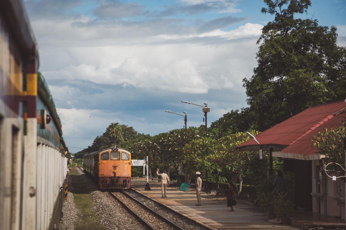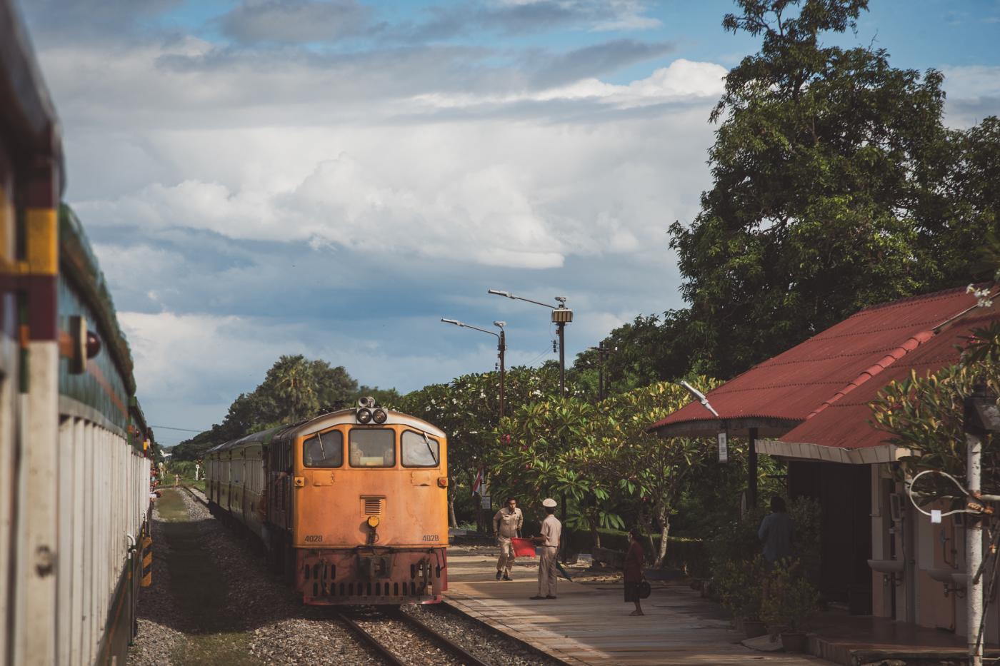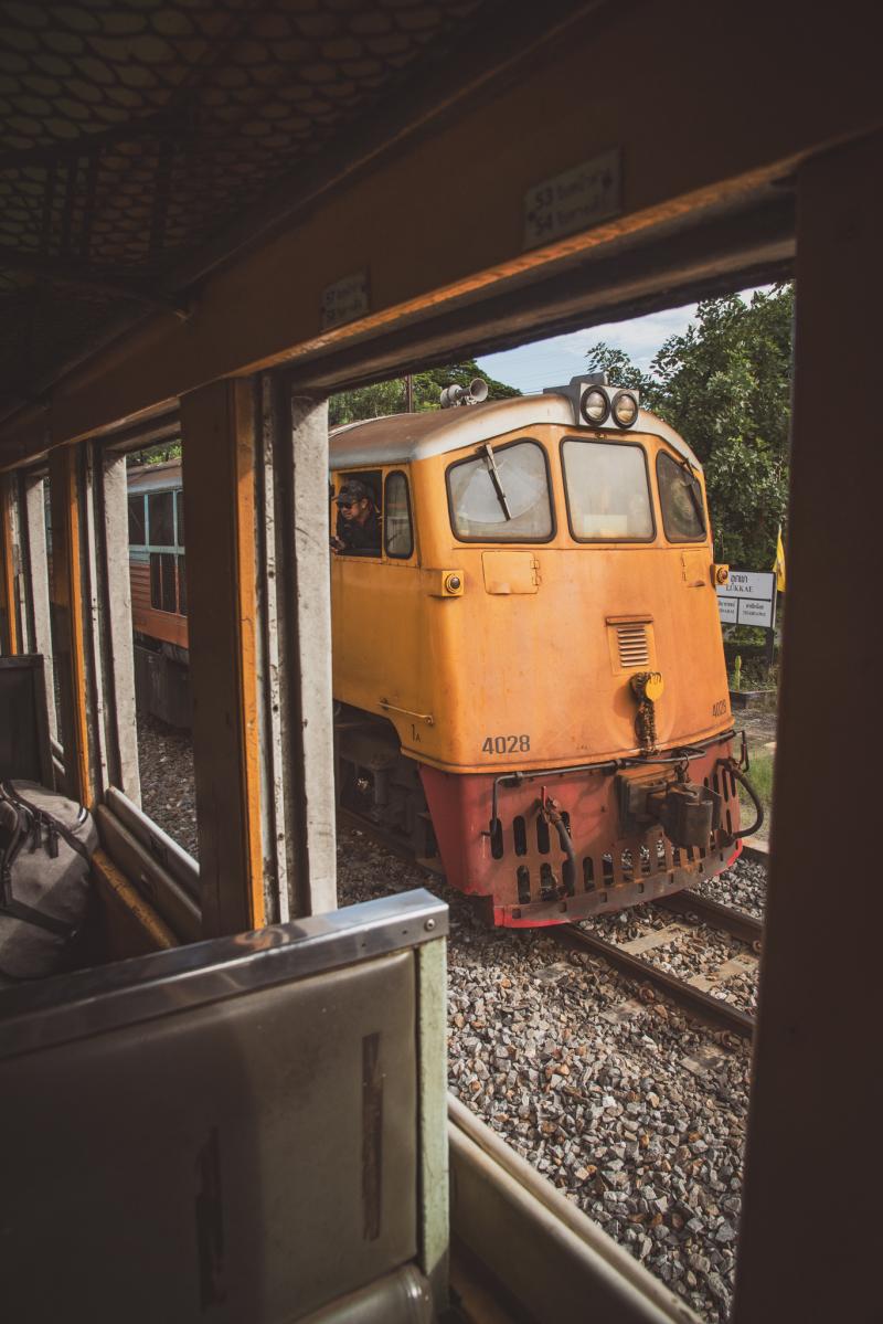 写真だと小さくしか映ってないが、タイ国鉄の機関士はなかなかいかつい人が多い気がする。帽子に髭そしてグラサンなのでどっちかというと軍人に見える。