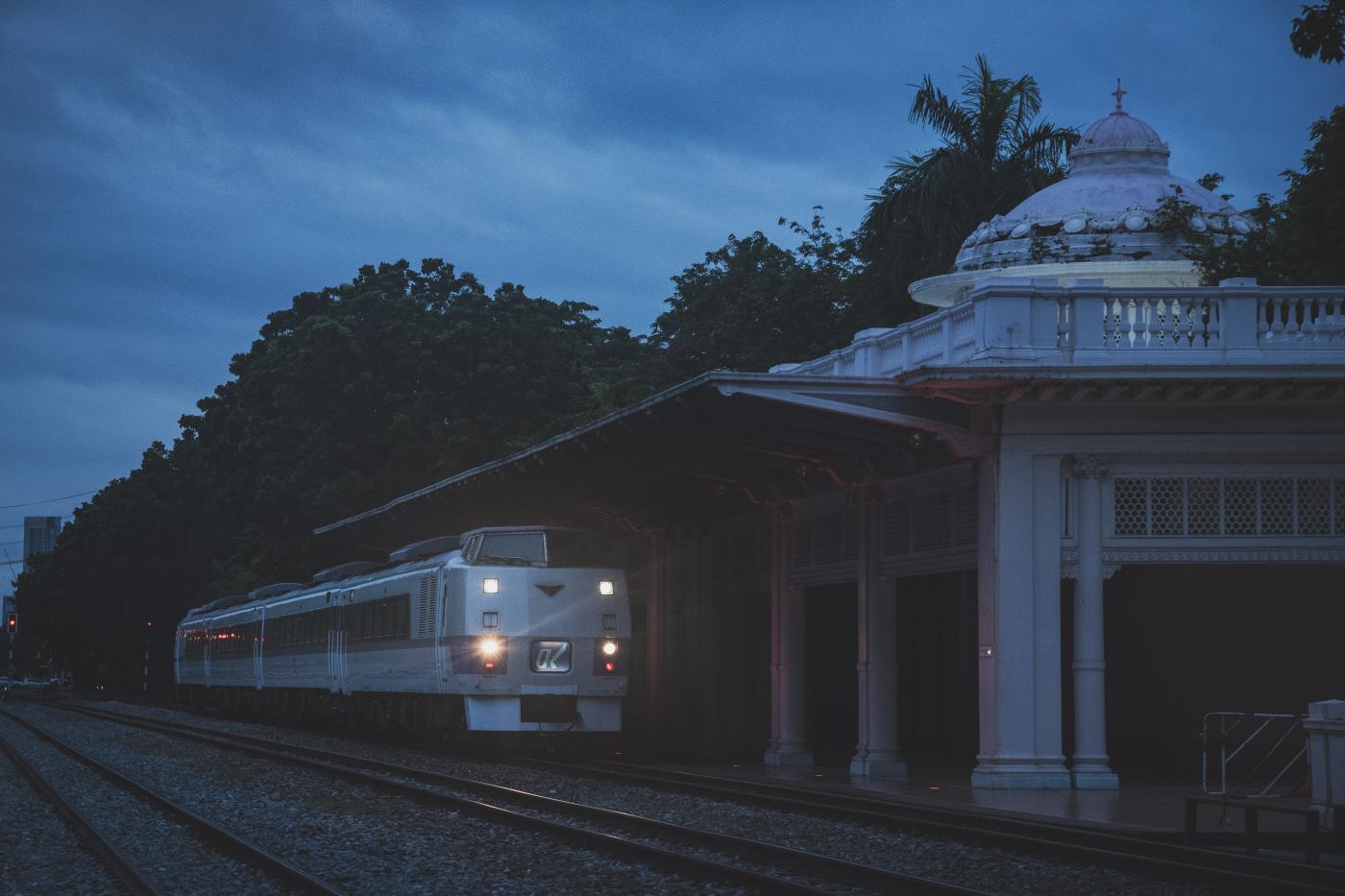 だいたい空港から40分で、チットラダー宮殿駅付近に到着。セッティングしていると、線路の向こうにライトが灯る。