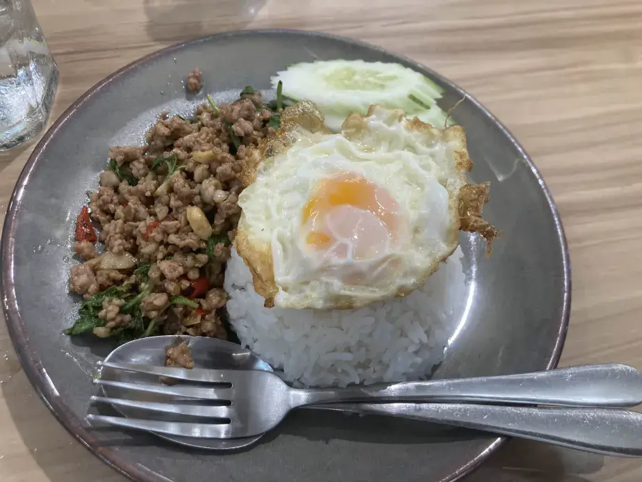 タイと言ったらの飯、ガパオライス!卵がボリューミーで素晴らしい。
