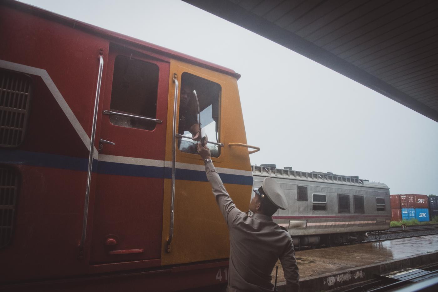 ここから先のラオス区間も通票閉塞で、タブレットの受渡しが行われる。