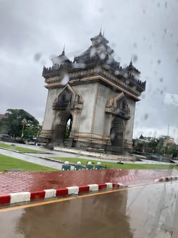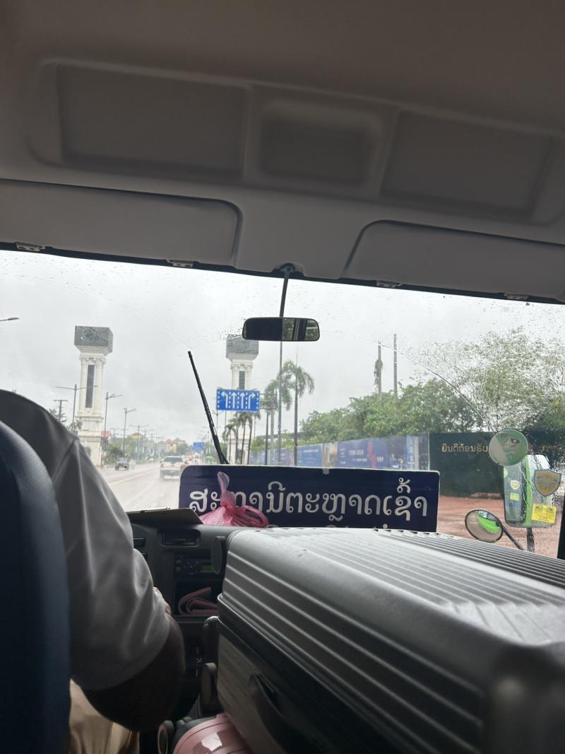 生憎の雨で窓からの景色があまり見れなかったが、ゆっくりと第一タイラオス友好橋を渡っていく。橋の真ん中で国旗がタイからラオスに変わった。人生10ヶ国目、ラオス。