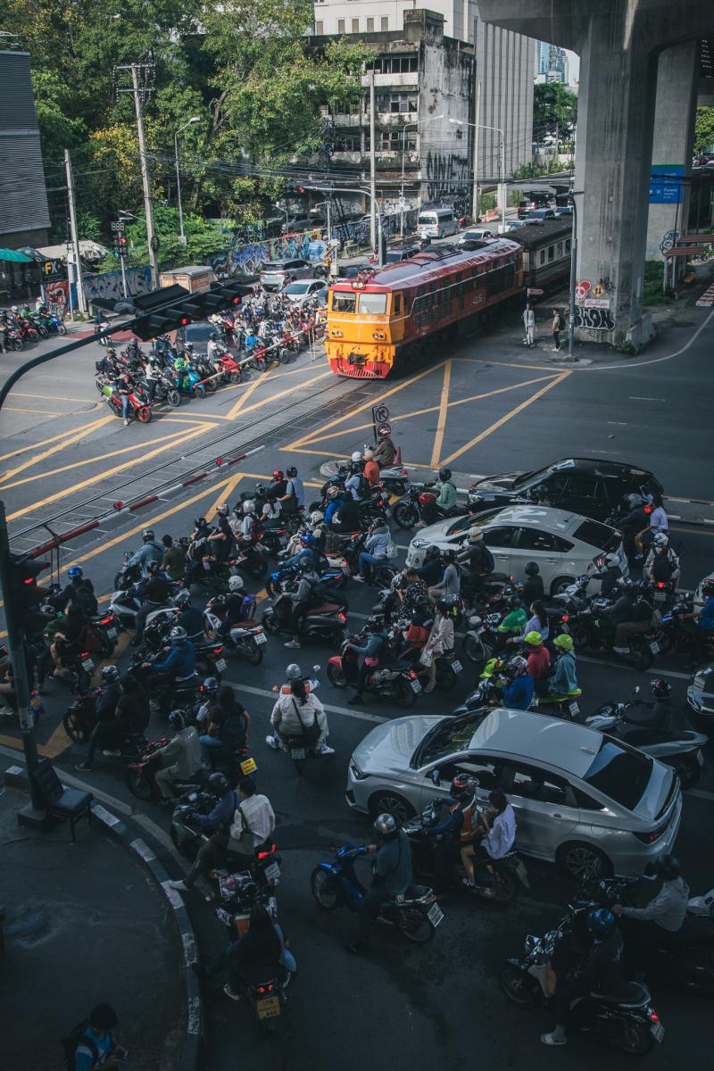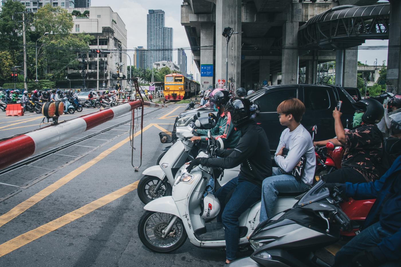 もう空間という空間にバイクがたまり、列車が通過するのを今か今かと待ち続けている。