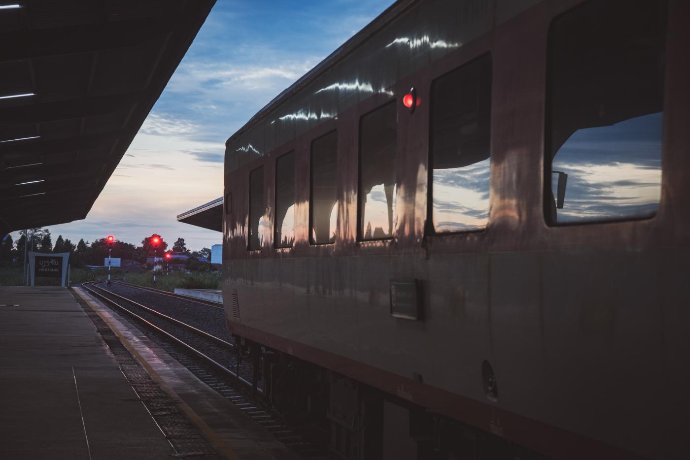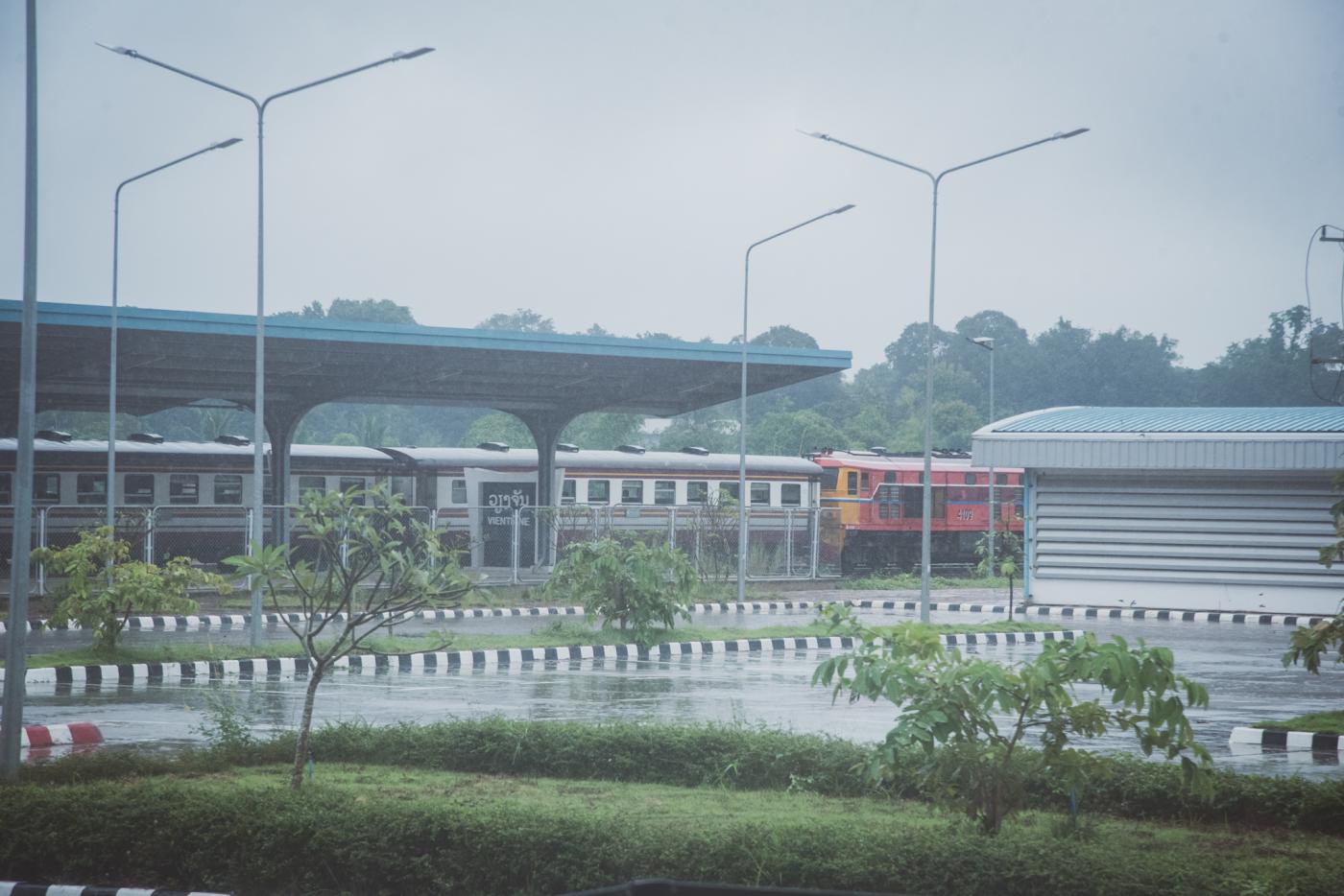 大きく「VIENTIANE」と表示がされており、機関車と客車はいつものタイ国鉄でも見える風景が全然タイ国鉄と違う。